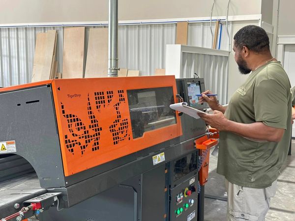 Our new facility is outfitted with state-of-the-art machinery to help optimize production and keep consumer costs down. Check out this Homag Centateq N-300 Router!